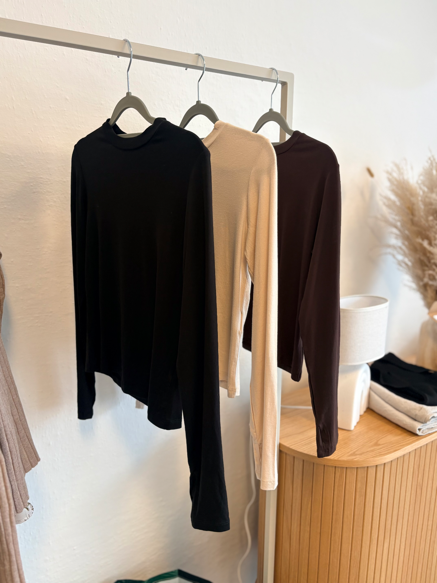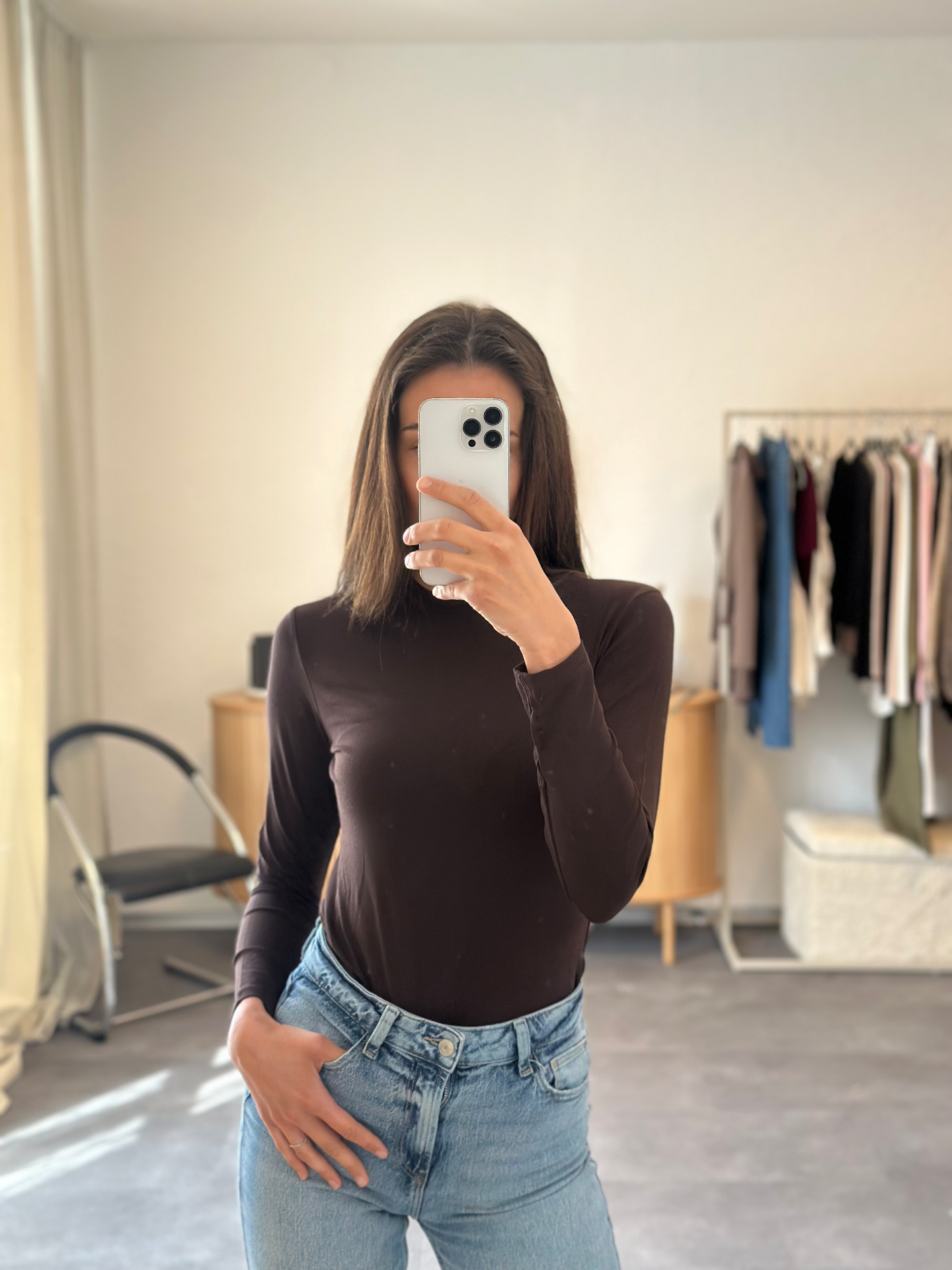 Elegantné  dámske tričko s dlhým rukávom v nadčasovom hnedom odtieni. Priliehavý strih krásne zvýrazní siluetu a zároveň poskytuje pohodlie počas celého dňa. Vyrobené z príjemného elastického materiálu, ktorý sa prispôsobí postave a zaručí komfort pri nosení. Minimalistický dizajn s okrúhlym výstrihom sa ľahko kombinuje s nohavicami, sukňou aj džínsami. Ideálna voľba na bežné nosenie, do práce aj na elegantnejšie príležitosti. Dostupné vo farbách: hnedá, béžová, čierna.